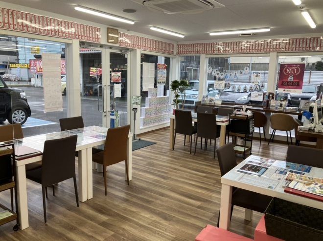 受付で車検のご案内。